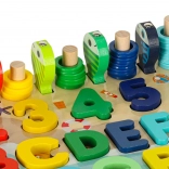 Farebná drevená vzdelávacia hračka 3v1 spája sorter tvarov a čísel, počítadlo a magnetickú hru chytania rybičiek. Podporuje učenie farieb, tvarov a čísel, rozvíja jemnú motoriku, sústredenie a trpezlivosť. Kvalitne spracované drevené diely s hladkými hranami sú bezpečné pre deti a lákajú k objavovaniu formou hry.