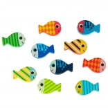 • farebné drevené rybičky