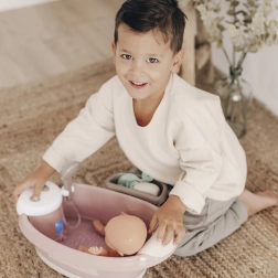 Obsahuje teplomer, fľaštičku a uterák, ktoré robia hru ešte reálnejšou a učia deti starať sa o bábätká.