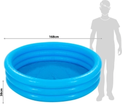 Nafukovací bazén Intex Crystal Blue je ideálnou voľbou na horúce dni na záhrade. Vďaka trojkrúžkovej konštrukcii je stabilný a pohodlný, pričom inštalácia je otázkou niekoľkých minút – stačí ho rozložiť na rovný povrch, nafúknuť a napustiť vodou. Kvalitný vinyl s hrúbkou stien 0,23 mm a podlahy 0,18 mm zaručuje odolnosť a dlhú životnosť.