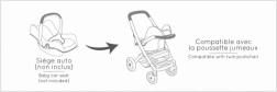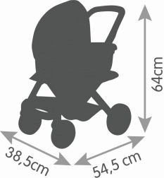 Robustné poťahy z plastovej tkaniny sú odolné a ľahko udržiavateľné – stačí ich utrieť vlhkou handričkou. Otočné predné kolieska a protihluková vrstva na kolesách sa postarajú o plynulý, tichý a stabilný pohyb doma aj vonku. Vhodné pre bábiky do 42 cm (bábika nie je súčasťou balenia).