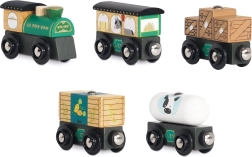 Vagóniky sa spájajú pomocou silných magnetov, vďaka čomu sa s vlakom ľahko manipuluje. Súprava je kompatibilná s väčšinou drevených vláčkodráh, takže bez ťažkostí zapadne do vašej zbierky.