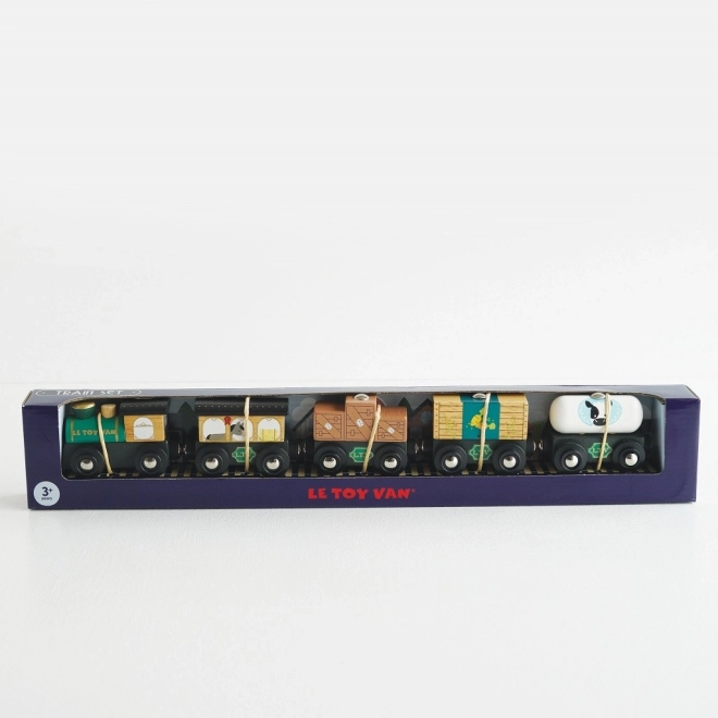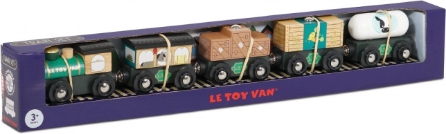 Roztomilý drevený nákladný vlak v zelenej farbe od Le Toy Van je pripravený na výpravy plné fantázie. Je vyrobený z udržateľného dreva, ručne domalovaný netoxickými farbami na vodnej báze a vďaka magnetickým spojkám ľahko prepojí vagóniky. Kompatibilný s väčšinou drevených vláčkodráh, rozvíja motoriku, reč aj sociálne zručnosti. Ideálny pre deti od 3 rokov.