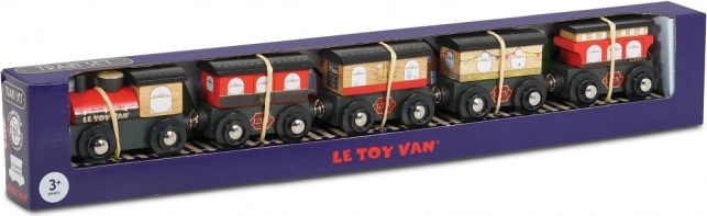 Štýlový drevený vlak ROYAL EXPRESS od Le Toy Van poteší deti aj rodičov. Obsahuje lokomotívu a päť vagónov s magnetickým spojením, je vyrobený z udržateľného dreva a maľovaný netoxickými farbami na vodnej báze. Podporuje jemnú motoriku, imaginačnú hru a je kompatibilný s väčšinou drevených vláčikodrág.