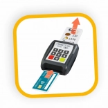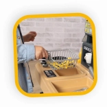 Kuchynská časť na prípravu jedál a výdajným pultom s pokladňou a platobným terminálom podporujú realistickú hru na reštauráciu.