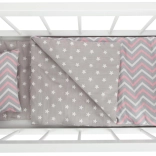 Súčasťou je vankúšik a dečka s modernými vzormi, ktoré ľahko zladíte s detskou izbičkou.