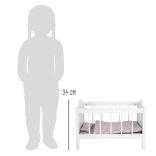 Táto elegantná biela postieľka pre bábiky z masívneho dreva je perfektným doplnkom pre každé detské kráľovstvo. Vďaka pevným latám a stabilnému prevedeniu sa bábiky či plyšové hračky vyspia pohodlne a v bezpečí. Súčasťou balenia je štýlová obojstranná posteľná bielizeň s vankúšikom a dečkou, ktorá dotvára moderný vzhľad postieľky.