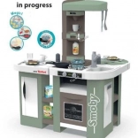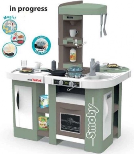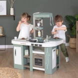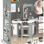 Táto priestranná kuchynka inšpirovaná značkou TEFAL ponúka všetko pre autentickú hru: pracovnú dosku, drez s batériou, kávovar na kapsuly, výrobník perlivých nápojov, rúru, umývačku, chladničku a otvorené poličky. Elektronická funkcia magického hrnca po naliatí vody a stlačení tlačidla vytvára skutočné bublinky, ktoré uchvátia každého malého kuchára.