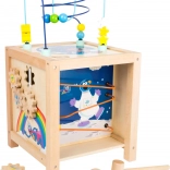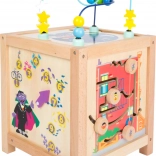Táto mnohostranná kocka je ideálnym nástrojom pre rozvoj detí, pretože ponúka päť rôznych strán plných zaujímavých aktivít. S farebnými postavičkami a priateľskými motívmi táto kocka pomáha deťom učiť sa a experimentovať v bezpečnom prostredí.