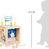 Kocka je vyrobená z kvalitného dreva a spĺňa všetky bezpečnostné normy, čo zaisťuje dlhodobú zábavu a bezpečné hranie pre vaše najmenšie.