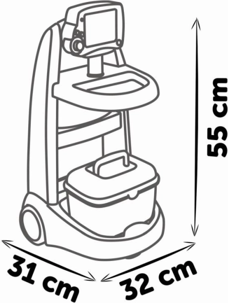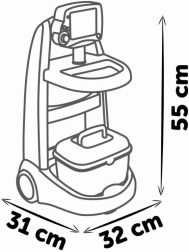 Elektronický lekársky vozík SMOBY prináša deťom realistickú hru na doktora. Vďaka integrovanému elektronickému modulu EKG so skutočnými zvukmi si deti vyskúšajú meranie životných funkcií aj počúvanie tepu. Vozík je ľahký, stabilný a ľahko ovládateľný vďaka dvom kolieskam, takže ho bez ťažkostí zvládnu aj menšie deti. Všetko príslušenstvo možno prehľadne uložiť do priloženého kufríka.
