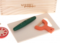 Set je skvelý na samostatnú hru aj spoločné varenie s rodičmi: podporuje koordináciu ruka–oko, rozvoj slovnej zásoby (názvy potravín, častí) a kreatívnu rolovú hru. Estetická drevená debnička pomáha udržiavať poriadok a je pripravená na rýchle upratanie.