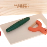 Súčasťou je lopárik, bezpečný nôž aj škrabka. Malí kuchári si vyskúšajú prípravu jedla krok za krokom – od šúpania po krájanie.