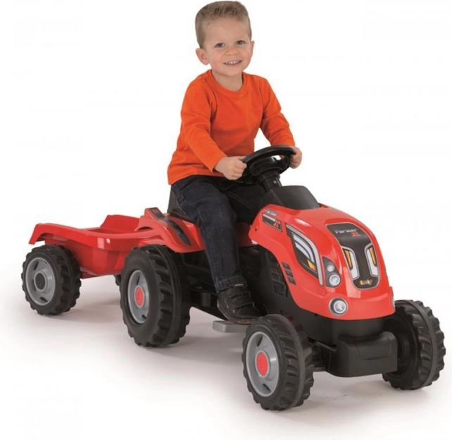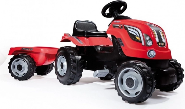 Súčasťou je odpojiteľný prívesný vozík na prevoz hračiek, piesku či drobných nákladov. Traktor je vyrobený z kvalitného plastu a kovu, je odolný a ideálny na použitie v interiéri aj exteriéri. Univerzálna hračka rozvíja motoriku, koordináciu aj samostatnosť.