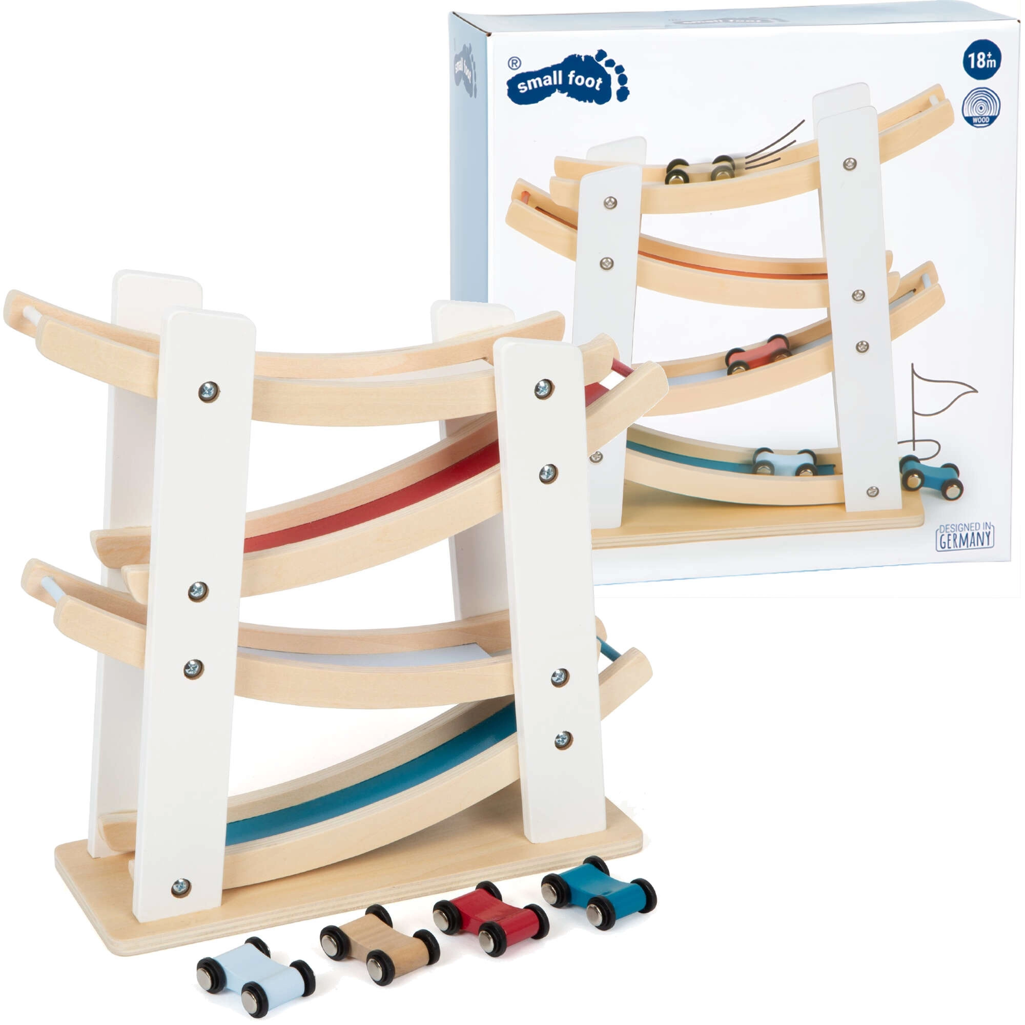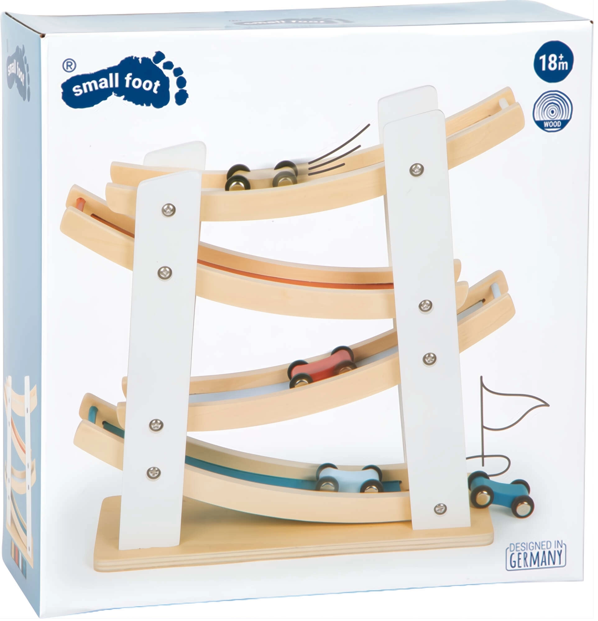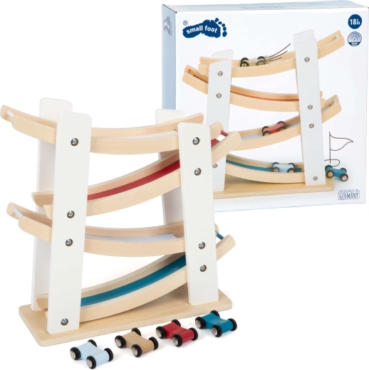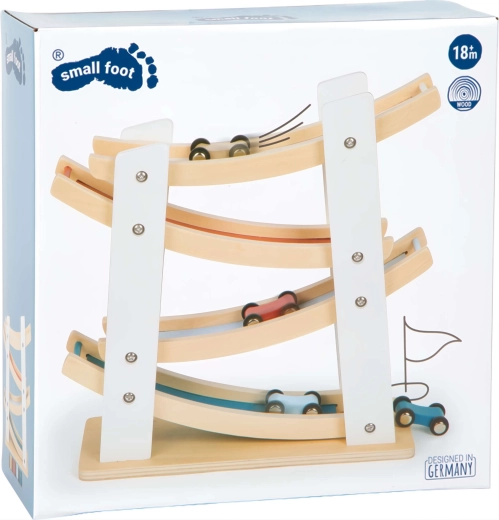 Objavte zábavu pre najmenších s drevenou pretekárskou dráhou s autíčkami od Small Foot. Robustná konštrukcia z prírodného dreva, štyri farebné autíčka a plynulé zjazdy po kaskádových rampách rozvíjajú jemnú motoriku, koordináciu oko–ruka a pochopenie príčiny a následku. Ideálna hračka od 18 mesiacov na každodenné kreatívne hranie.