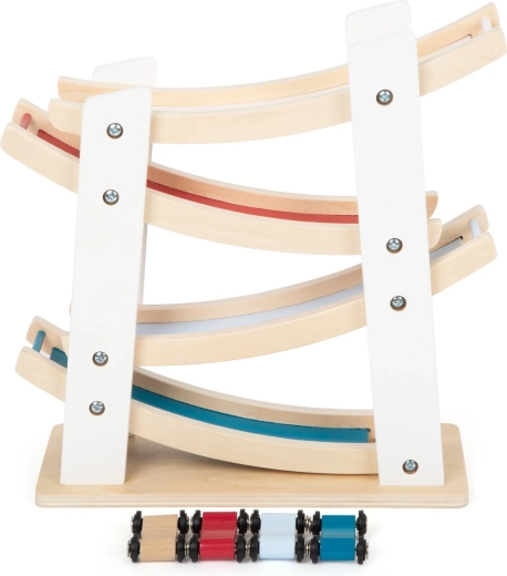 Dráha je vyrobená z kvalitného prírodného dreva so stabilnou základňou a hladkými hranami pre bezpečné hranie malých detí.
