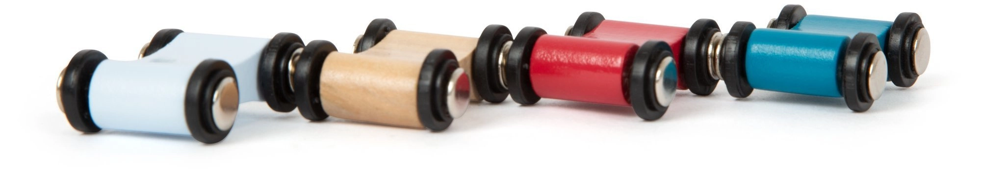 V balení nájdete kompletnú dráhu a 4 malé autíčka v rôznych farbách. Nadčasový prírodný vzhľad s farebnými pruhmi ľahko zapadne do detskej izby a podporí sústredenie aj radosť z objavovania.