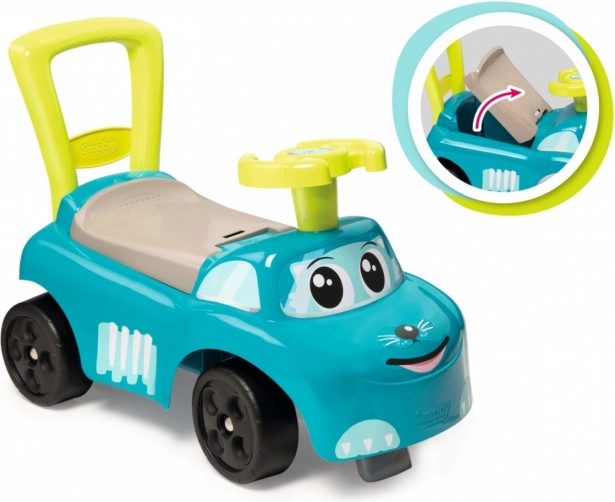 Modré odrážadlo je navrhnuté tak, aby poskytovalo bezpečný a stabilný pohyb pre malé deti. S jeho pohodlným sedadlom, ktoré obsahuje úložný priestor, umožňuje deťom skryť drobnosti. Je vybavené spätnou rukoväťou, ktorú dieťa môže použiť pre ľahšie manévrovanie. Zabudované výstupky bránia preklopeniu dopredu alebo dozadu.