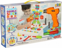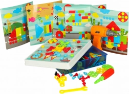 Stavebnica s mozaikovou doskou umožňuje deťom pomocou hračkárskej vŕtačky, skrutkovača a kľúča skrutkovať farebné skrutky a vytvárať rozmanité obrázky aj priestorové modely. Oživte detskú fantáziu – jediným limitom je predstavivosť malého konštruktéra.