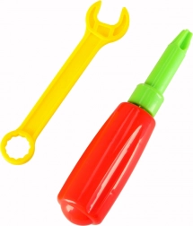 Deti môžu skrutkovať ako skutoční kutilovia vďaka bezpečnej vŕtačke na batérie, skrutkovaču a kľúču – skvelé na tréning motoriky.