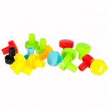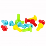 Veľká sada farebných skrutiek, doštičiek a tvarových dielikov prebúdza kreativitu a podporuje samostatné tvorenie mozaík aj modelov.