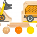 5 stavebných prvkov, 3 guličky, 1 bager, 1 sklápač