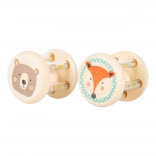 Táto sada dvoch hrkálok SMALL FOOT v prírodnom dreve s pastelovou potlačou zvieratiek spája nadčasový dizajn a funkčnosť. Vďaka priehľadným trubičkám sú farebné koráliky stále na očiach a pri každom zatrasení vytvárajú upokojujúci zvuk. Hrkálky skvele sedia do detskej rúčky a podporujú koordináciu oko–ruka aj prvé uchopovanie.