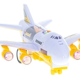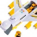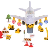 Tento multifunkčný set kombinuje dopravné lietadlo s mini stavebným svetom. Autíčka môžu do lietadla vojsť po sklopnej prednej rampe a vďaka otvárateľnej hornej časti majú deti jednoduchý prístup k nákladu. Motory sa rozsvietia LED svetlami, ktoré podporia realistický zážitok z hry.