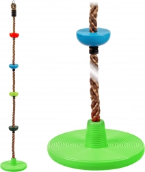 Zábavné a bezpečné detské šplhacie lano s farebnými diskami a okrúhlou plastovou hojdačkou na vonkajšie hry. Podporuje pohyb, koordináciu a silu. Disponuje nosnosťou 100 kg a pevným lanom s hrúbkou 2,6 cm, ideálne k detskému ihrisku alebo k domčeku na strome.