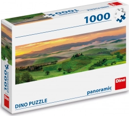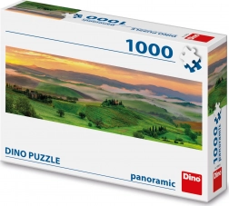 Užite si relax pri skladaní panoramatických puzzle s motívom hmlistého západu slnka nad zelenými kopcami. Kvalitná česká výroba DINO, presné výrezy a 1000 dielikov pre príjemnú výzvu. Odolný zdravotne nezávadný kartón, panoramatický formát a ideálny obraz na zarámovanie po dokončení.