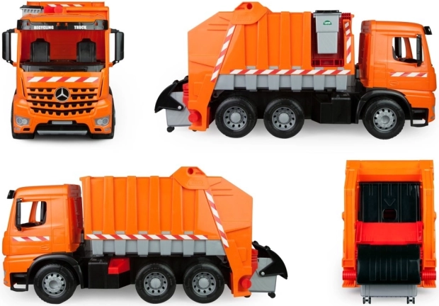 Plne multifunkčné smetiarske auto s odnímateľnou popolnicou a kontajnerom na kolieskach. Vyrobené z kvalitného plastu. Hlavné vlastnosti: spĺňa požiadavky EÚ na bezpečnosť hračiek, plne mechanicky funkčné, vyrobené z kvalitného, odolného plastu