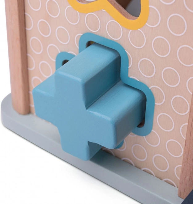 Táto motorická kocka je úžasnou hračkou pre malé deti, ktorá pomáha rozvíjať ich zručnosť a koordináciu. Farebné kocky jednoducho pasujú do správnych otvorov a procvičujú logické myslenie detí. Pastelové farby a prírodné drevo zaisťujú, že hračka je vhodná pre chlapcov aj dievčatá.