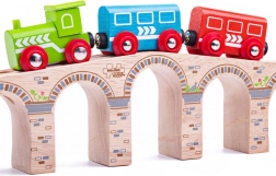 Most BIGJIGS RAIL pridá vašej vláčkodráhe pôsobivú výšku aj dĺžku. Vďaka pevnej drevenej konštrukcii a hladkým spojom jazdia vláčiky plynulo, zatiaľ čo pod oblúkmi je dostatok priestoru aj pre vysoké náklady. Elegantné zdobenie pripomínajúce kamenné murivo dodá setu realistický vzhľad.