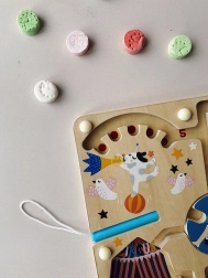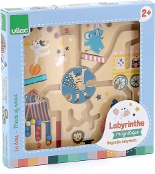 Magnetický labyrint VILAC prináša deťom od 2 rokov svet cirkusu v jemných farbách Michelle Carlslund. Magickým perom s magnetom posúvajú guličky dráhami, stretnú sa s akrobatmi, zvieratami aj klaunmi a na konci vrátia každú guličku na správne miesto podľa farby a čísla. Hra prirodzene rozvíja sústredenie a trpezlivosť.