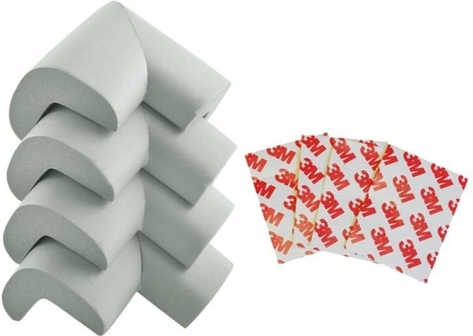 Praktická sada štyroch penových chráničov rohov zaistí bezpečie detí pri ostrých hranách stolov, skriniek aj schodov. Mäkká a pružná vodoodolná pena pohlcuje nárazy, ľahko sa čistí a vďaka silnej obojstrannej páske pevne drží na čistom a odmastenom povrchu. Nenápadný sivý dizajn ladí s väčšinou interiérov.