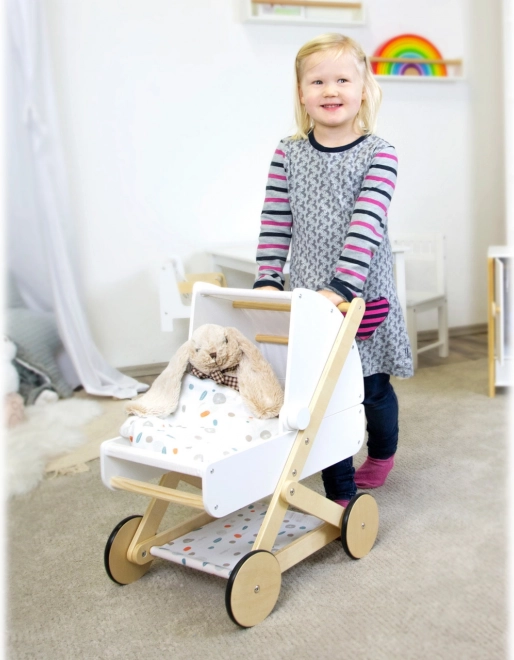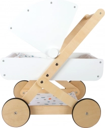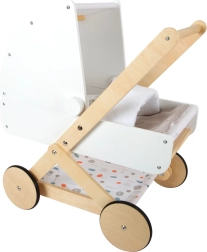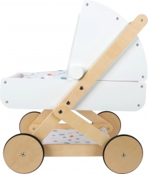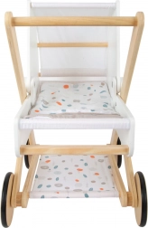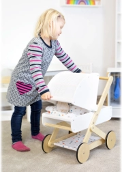 Objavte kvalitný kočík pre bábiky, ktorý skvele zapadne do každého detského izbičky. Kombinuje prírodné drevo, odolné a umývateľné textílie a jemnú paletu farieb. Nízka hmotnosť a stabilná konštrukcia zaručí bezpečnú jazdu, zatiaľ čo pogumované kolieska sa postarajú o tichú prevádzku na akomkoľvek povrchu.