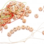Urobte z učenia písmen zábavu s veľkým dreveným reťazcom z písmen značky Small Foot. Tento set obsahuje 300 ks drevených kociek, ktoré sa dajú ľahko navliekať na štyri farebné šnúrky, ktoré sú súčasťou balenia. Deti môžu tvoriť reťazce mien a slovných spojení, čím sa hravou formou učia poznávať písmená a rozvíjajú svoje schopnosti 'písať'.