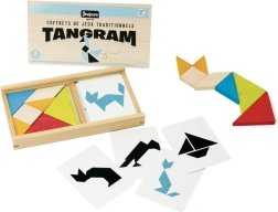 Tento kvalitný tangram od značky Jeujura rozvíja logické myslenie, fantáziu a jemnú motoriku detí. Vďaka pevným dreveným dielikom a kartičkám s predlohami môžu deti skladať jednoduché aj náročnejšie tvary alebo tvoriť podľa vlastnej predstavivosti. Drevená krabička so sieťotlačou udržiava všetko prehľadne pokope.