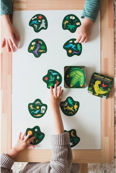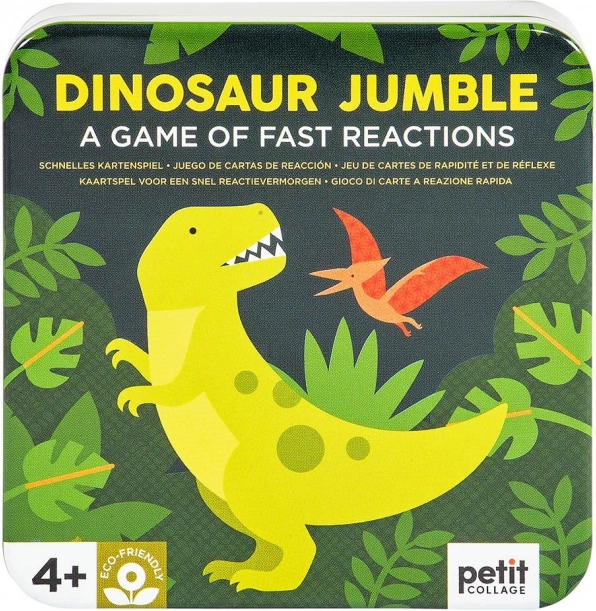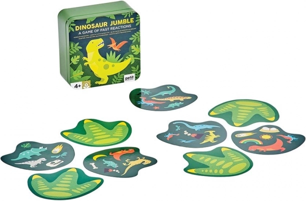 Trénujte svoj postreh s dinosaurami. Táto kartová hra ponúka až päť variant pravidiel a je plná farebných ilustrácií s tematikou dinosaurov. Istotne si ju rýchlo obľúbite aj pre jej skladnosť, je teda vhodná na hru doma aj na cestách. Balené v kovovej krabičke bez použitia plastu. Hlavné vlastnosti pre 2–6 hráčov 5 variant pravidiel praktické balenie Návod na hru: Základná varianta: Každému hráčovi rozdeľte jednu kartu lícom nadol. Balíček otočený lícom nahor umiestnite medzi hráčov. Na dohodnutý signál hráči otočia svoje karty. Hráč, ktorý ako prvý nahlási zhodný symbol na svojej karte a na karte v balíčku, si kartu z balíčka vezme. Takto sa balíček nakoniec doberie a víťazom sa stáva hráč s najväčším počtom kariet. Obrátená varianta: Rozdeľte medzi hráčov karty tak, aby všetci držali rovnaký počet kariet a jedna karta zostala. Hráči svoje karty v balíčku položia pred seba lícom nadol. Zvyšnú kartu, otočenú lícom nahor, položte medzi hráčov. Na dohodnutý signál hráči otočia vrchnú kartu svojho balíčka. Kto ako prvý nahlási symbol zhodný na svojej karte a karte medzi hráčmi, svoju kartu medzi hráčov na vznikajúcu kopu priloží a otočí ďalšiu svoju vrchnú kartu. Takto hra pokračuje, kým nezostane posledný hráč s kartami, a stáva sa tak porazeným. Hráč, ktorý sa kariet zbavil ako prvý, je víťazom. Skupinová varianta: Hrá sa na kolá. V každom kole je pred jednotlivca rozdaná po jednej karte lícom nadol. Na dohodnutý signál hráči svoju kartu otočia a ktorý z nich pomenuje a nahlási symbol zhodný so symbolom na karte iného hráča, svoju kartu mu odovzdá. Takto hra pokračuje, kým jeden hráč neprijme všetky karty v danom kole rozdané. Cieľom hry je zbavovať sa kariet, hráč, ktorý v súčte kôl prijal najviac kariet, je porazený. Rozmer balenia: 10 × 10,5 × 5 cm Vek: 4+ Materiál: kov, papier Počet dielikov: 31 ks