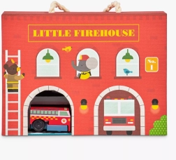 Táto kreatívna herná sada Little Firehouse poteší všetkých malých záchranárov. Obojstranná kartónová hasičská stanica, drevené naťahovacie autíčko a sada tratí a doplnkov vytvárajú realistické zázemie pre napínavé herné scenáre. Diely jednoducho zložíte a behom chvíľky je pripravené do akcie.