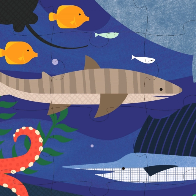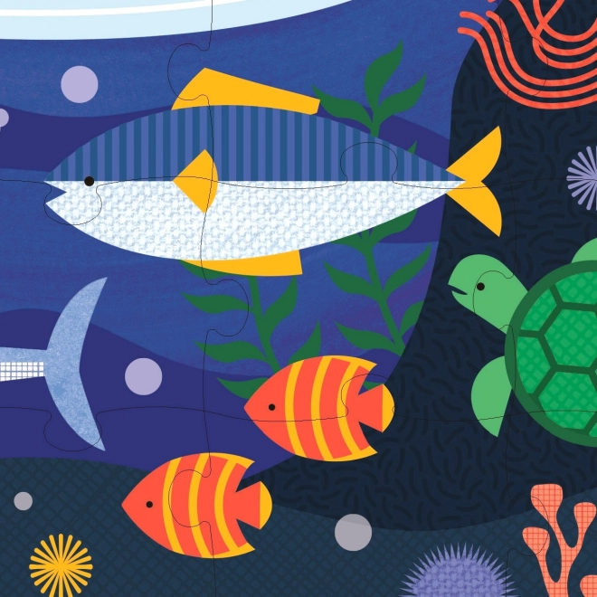 Objavte fascinujúci podmorský svet s dvojnásobným potešením vďaka obojstrannému puzzle. Každá strana obsahuje iný dizajn plný morských tvorov, čo zaručuje rozmanitú a zábavnú hru pre deti od 5 rokov. Puzzle je vyrobené z kvalitného papiera s certifikáciou FSC a potlačené farbivami vyrobenými zo zeleniny.