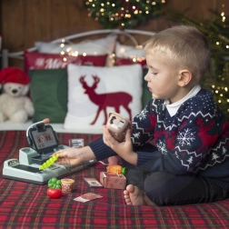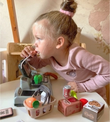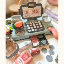 Pokladňa zahŕňa terminál, vďaka ktorému môže dieťa vykonávať platby hotovosťou, kartou alebo smartfónom, rovnako ako dospelí v obchode. Integrovaná váha a pohyblivý pás umožňuje dieťaťu usporiadať nákupy a zažiť skutočnú rolu predavača.