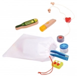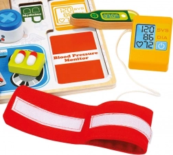 Deti sa zábavnou formou učia rozpoznávať stetoskop, teplomer, injekciu a ďalšie pomôcky a správne ich vkladať na svoje miesto.
