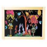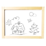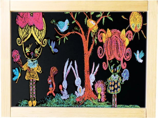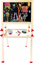 Súčasťou balenia je všetko potrebné: krieda, fixka, hubka a niekoľko magnetických obrázkov. Tabuľa sa dá rýchlo zložiť a úsporne uložiť, takže nezaberie veľa miesta. Dve pracovné plochy umožňujú, aby si dve deti tvorili súčasne.