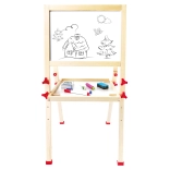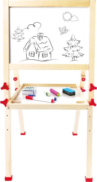 Táto kvalitná detská tabuľa kombinuje bielu magnetickú plochu na pripínanie obrázkov a písanie fixkou s klasickou bridlicovou tabuľou na kreslenie kriedou. Vďaka výškovému nastaveniu a stabilnej drevenej konštrukcii rastie s dieťaťom a skvele sa hodí do detskej izby aj herne.