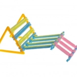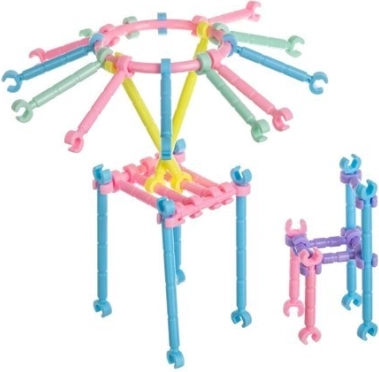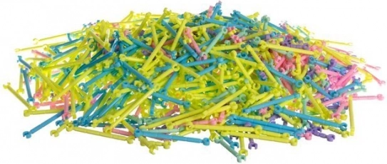 Obsahuje až 1000 rôznofarebných prvkov a spojok rôznych tvarov, vďaka ktorým môžu deti vytvárať atraktívne priestorové konštrukcie bez rizika lámania alebo poškodenia.