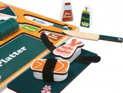 Sada obsahuje drevené komponenty ako sú sushi, omáčky, príbory a nožík na "rezanie", čo umožňuje realistickú a kreatívnu hru. Táto hra je vhodná pre deti od 36 mesiacov, avšak odporúča sa dohľad dospelej osoby u detí do 3 rokov.