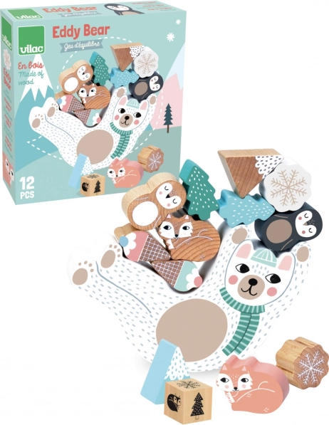 Roztomilá drevená balančná hra s mackom Eddy rozvíja jemnú motoriku, trpezlivosť a koordináciu. Hoďte kockou a podľa farby ukladajte na bruško macka snehové vločky, polárne líšky, tučniakov, hory či zmrzliny. Kto udrží vežu najdlhšie, vyhráva! Ekologicky vyrobené, ilustrovala Michelle Carlslund.
