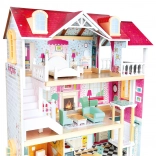 Bino trojposchodový drevený domček pre bábiky s výťahom a 13 doplnkami