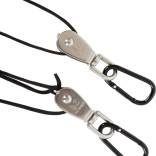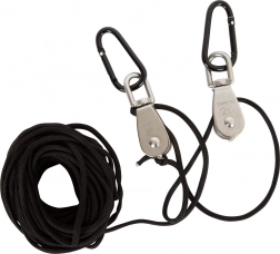 Praktické karabíny umožnia rýchle pripevnenie k trámu, háku alebo provizórnemu kotveniu – bez náradia, za chvíľku.